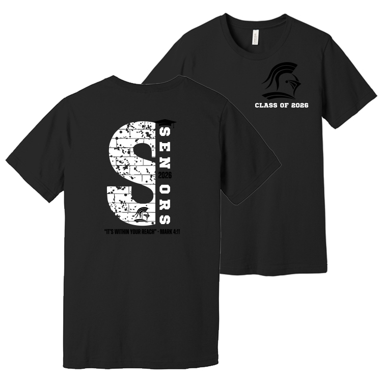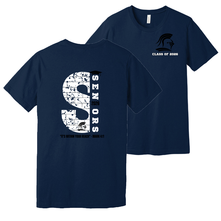 Unisex Jersey Short Sleeve Tee SENIORS 2026 with Medina Christian Academy SPIRITWEAR logo